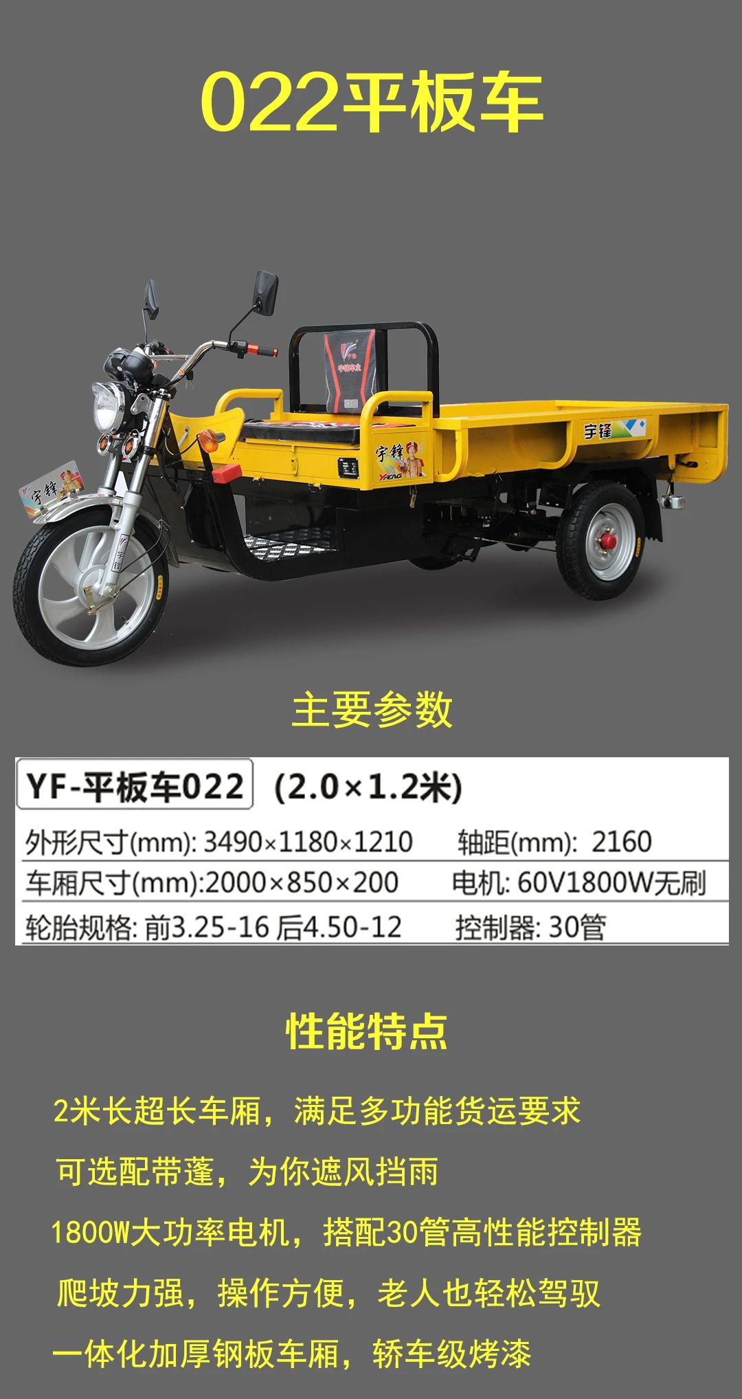 宇锋平板系列三轮车,时尚实惠网红标配