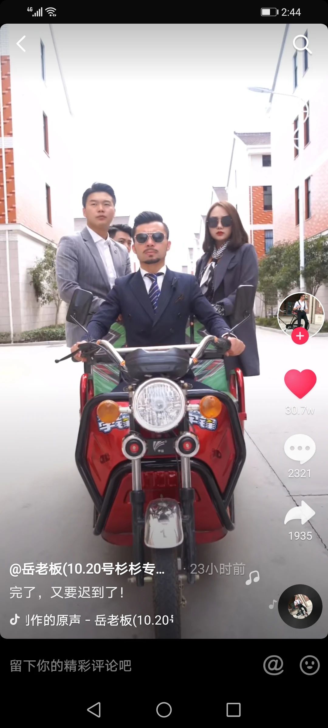近日,一则岳老板骑宇锋三轮车去直播的抖音视频火遍网络,不到24小时,粉丝点赞量已超过30万,两千多粉丝留言评论。