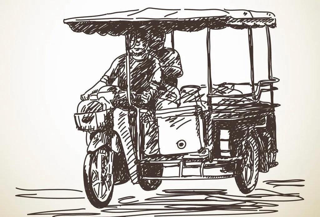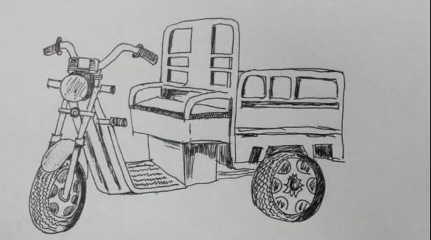 当我们从车上取下行李,父亲箭步把那辆新买的三轮车推来,装上包裹,我看出他的脸上洋溢着一股自信,原来是他有了一辆新的电动三轮车。