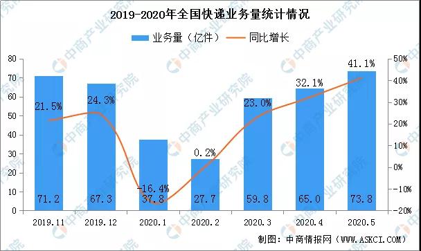 2020年以来,受疫情影响,不少行业放缓,而快递行业保持较快增长。数据显示,1-5月份,全国快递业务量累计完成264.1亿件,同比增长18.4%;业务收入累计完成3026.8亿元,同比增长9.9%。