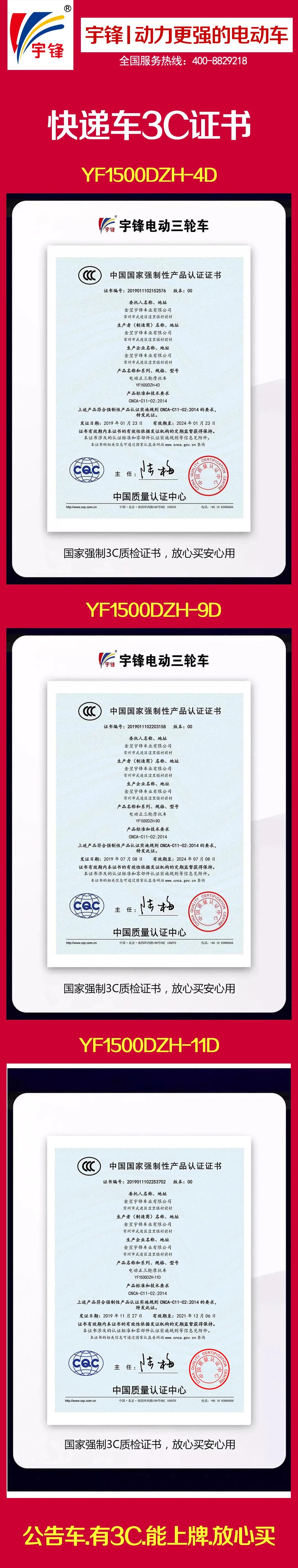 三款快递车型都获得了3C证书,有大合格证,可上牌,放心买。