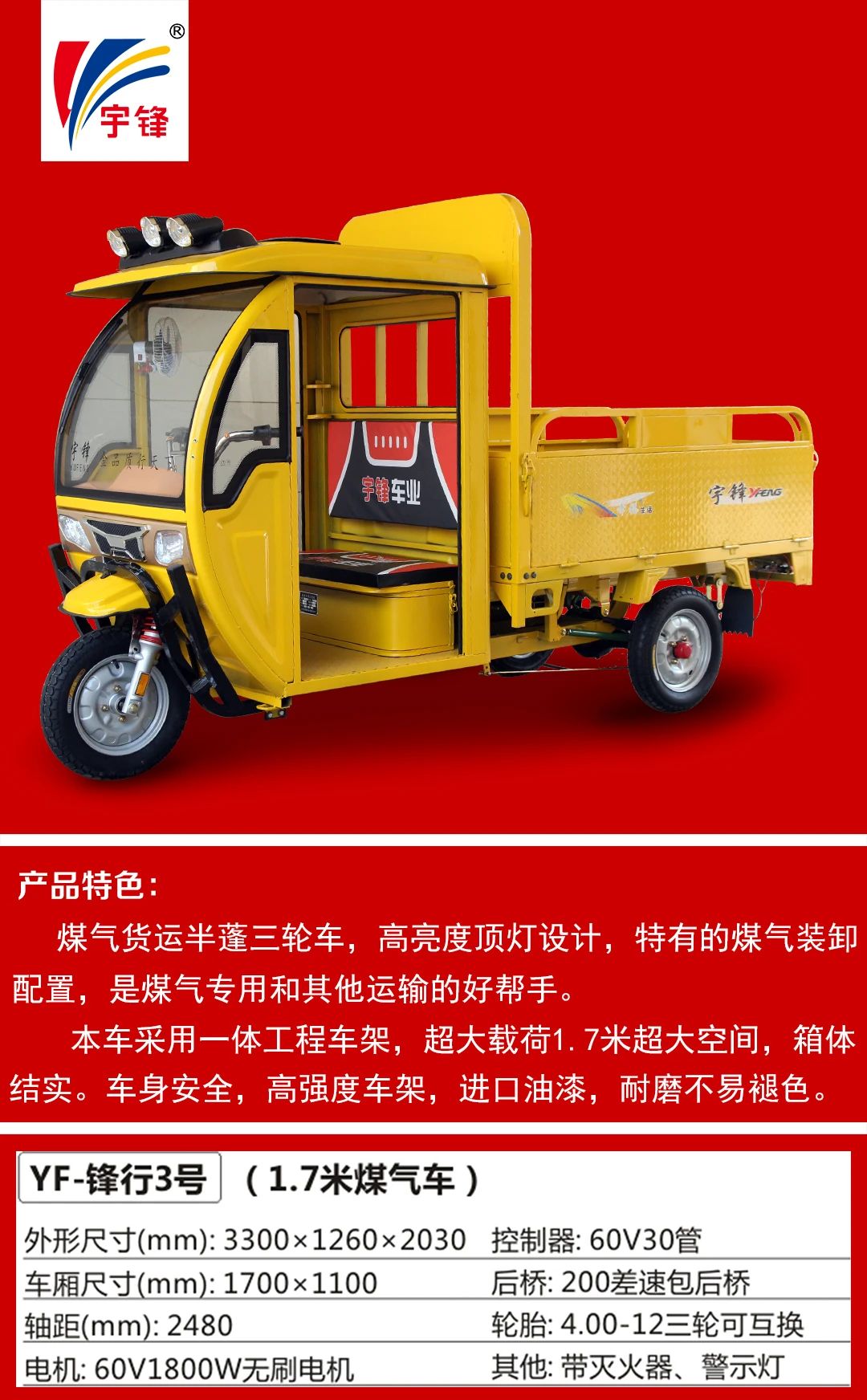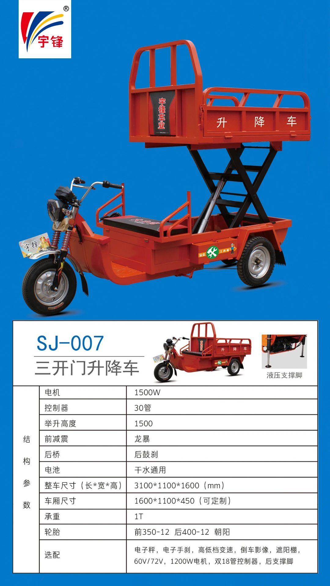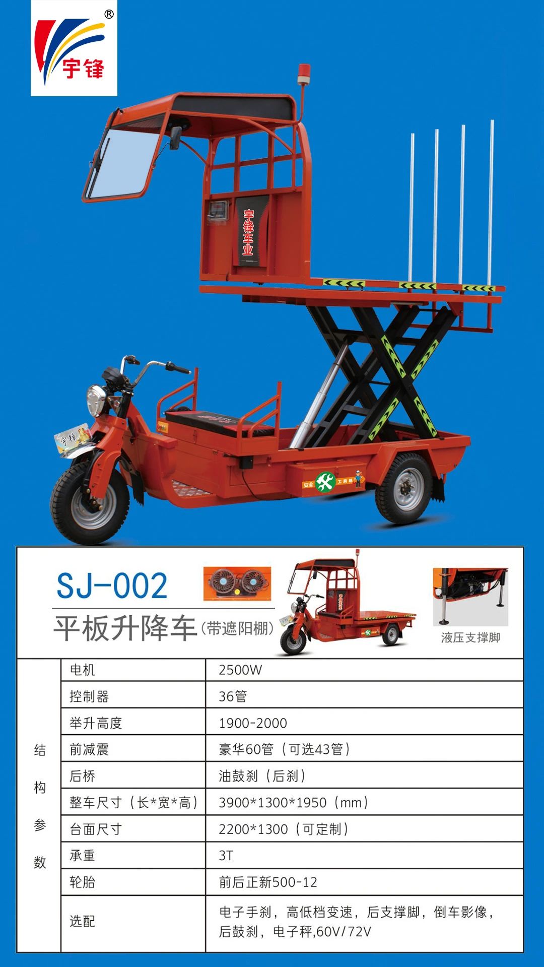 那辆宇锋电动特种三轮车