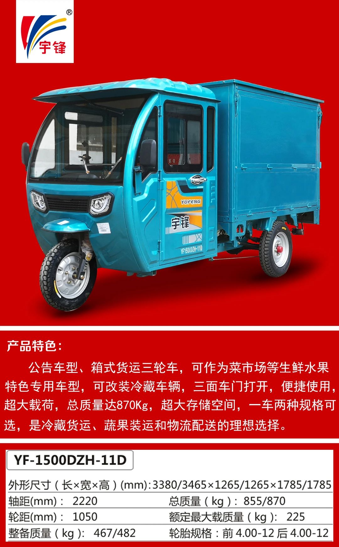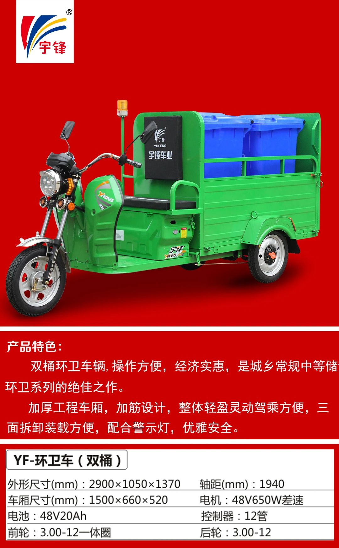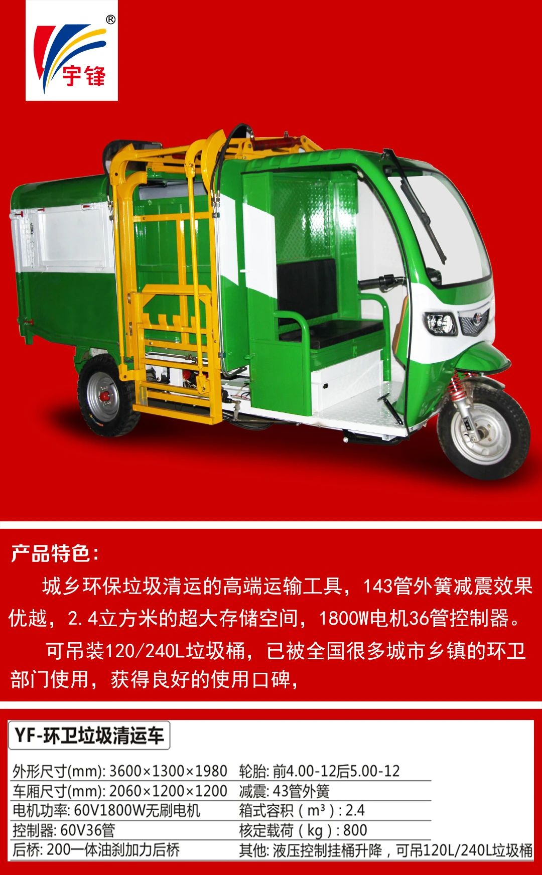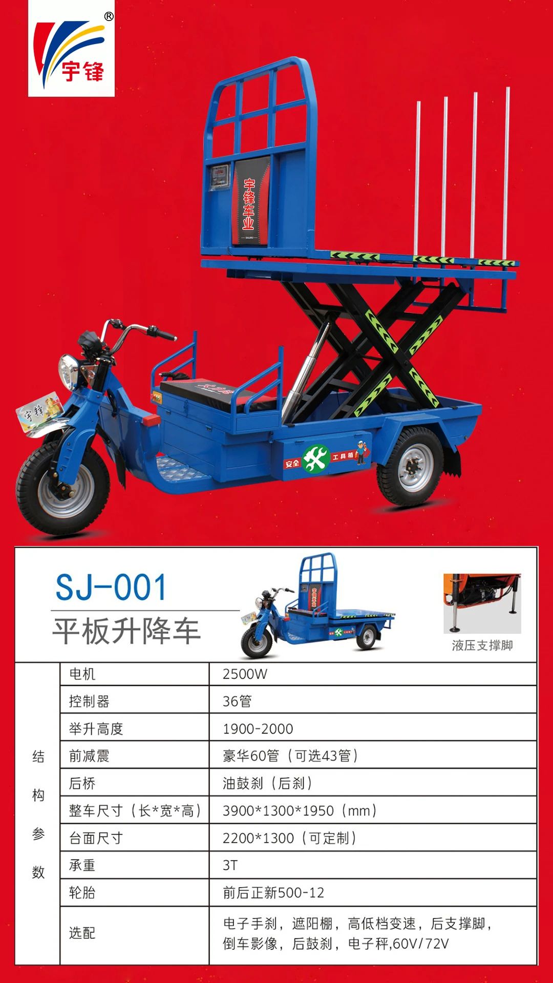 那辆宇锋电动特种三轮车
