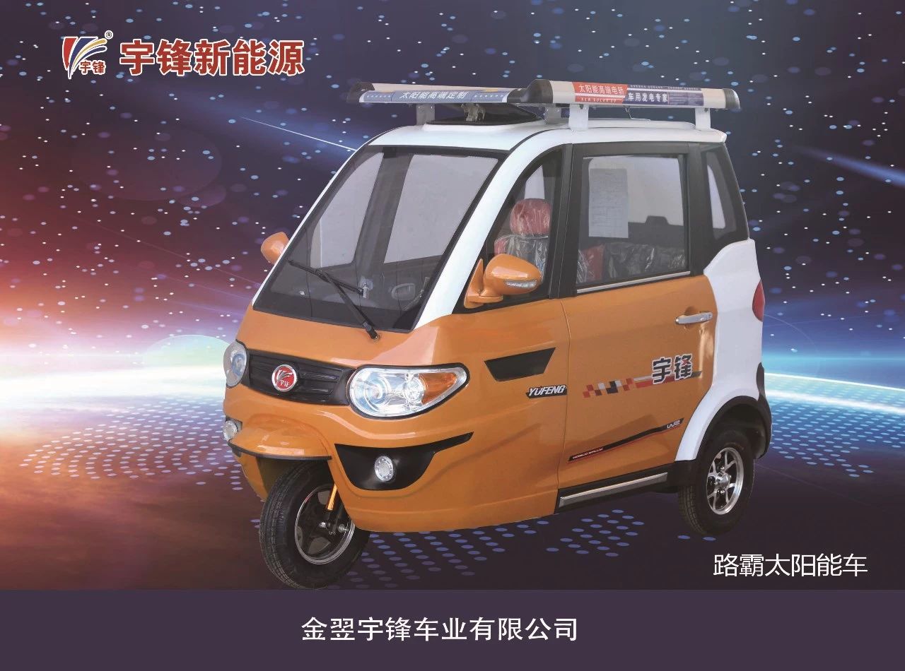 路霸三轮是宇锋自主研发的新品,获得多项发明专利,她介于篷车和新能源汽车之间,既有着篷车的外观特性,又有着新能源汽车的性能特点。还有路霸太阳能型,一次充电,太阳能发电续行久远。