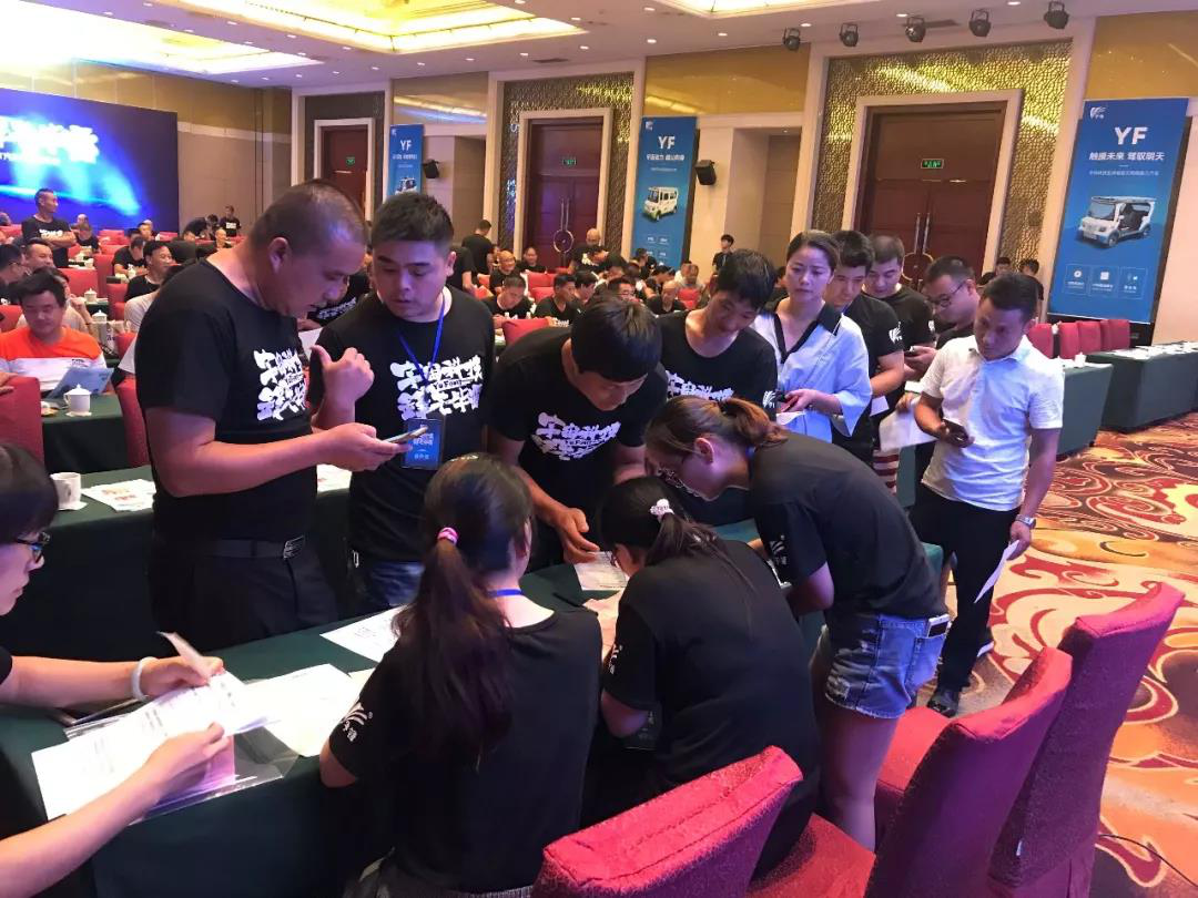 会议最后,宇锋车业市场总监张勇先生开启了本次会议的重磅福利环节——商务政策的发布与讲解。政策一经发布,现场经销商一拥而上,进行疯狂的抢单行动。大家看到的不只是一份优厚的商务政策,更是对太阳能电动车未来市场前景的一片看好。