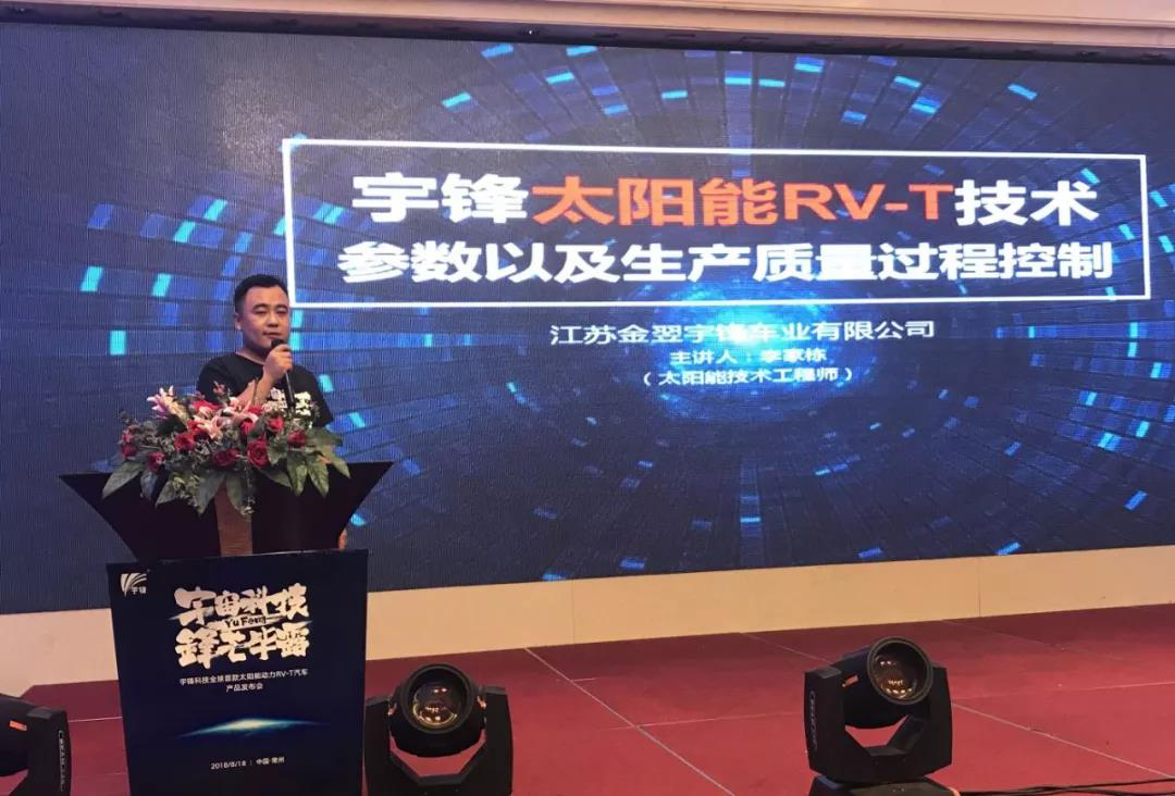八月是一个值得期待的季节,不单有热情奔放的气息,更有匠心新产品上市。宇锋新产品全新上市,再次用产品证明了企业硬实力,究竟这款产品有何奥妙?宇锋车业技术部李工进行全球首款太阳能动力RV-T产品介绍,为大家全方位解读新产品强大的实力,让我们从技术角度更加了解宇锋太阳能新产品。